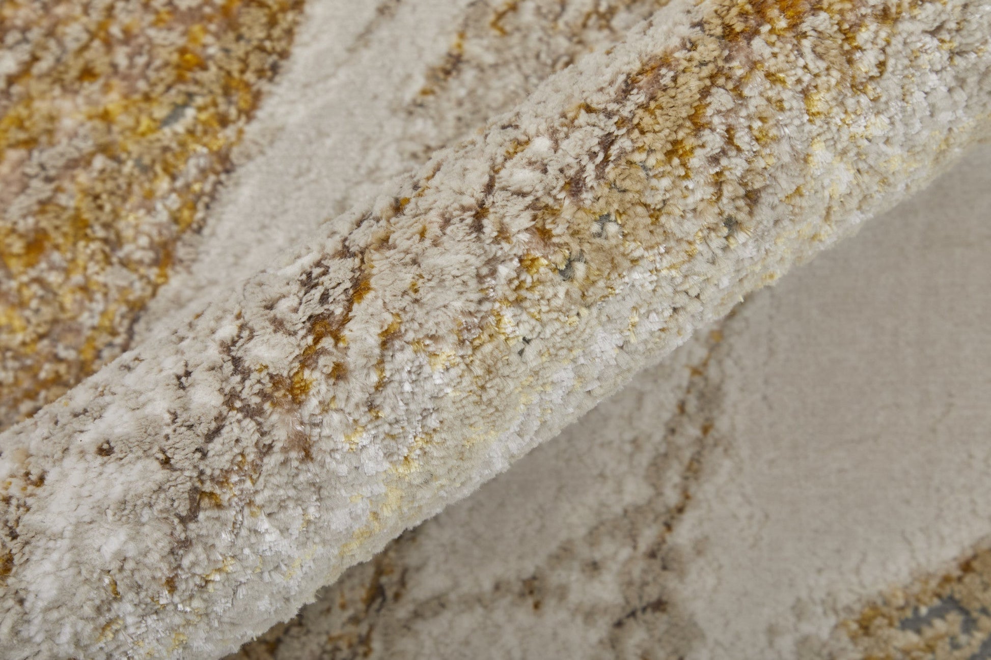 8' X 10' Ivory Brown and Gold Abstract Power Loom Area Rug