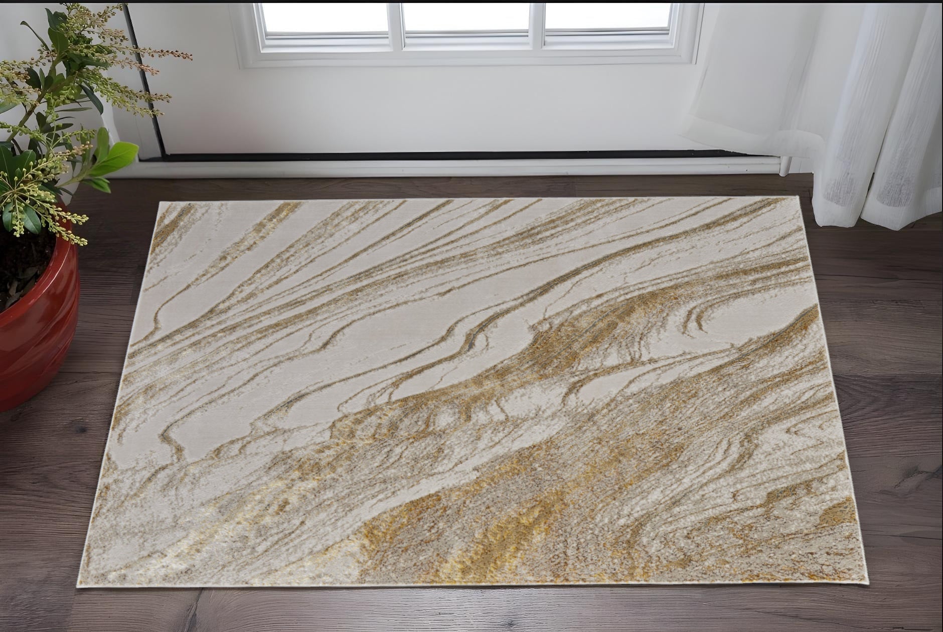 Transform your space with the 8' X 10' Ivory Brown and Gold Abstract Power Loom Area Rug. This stylish rug features a stunning abstract design that adds warmth and character to any room.