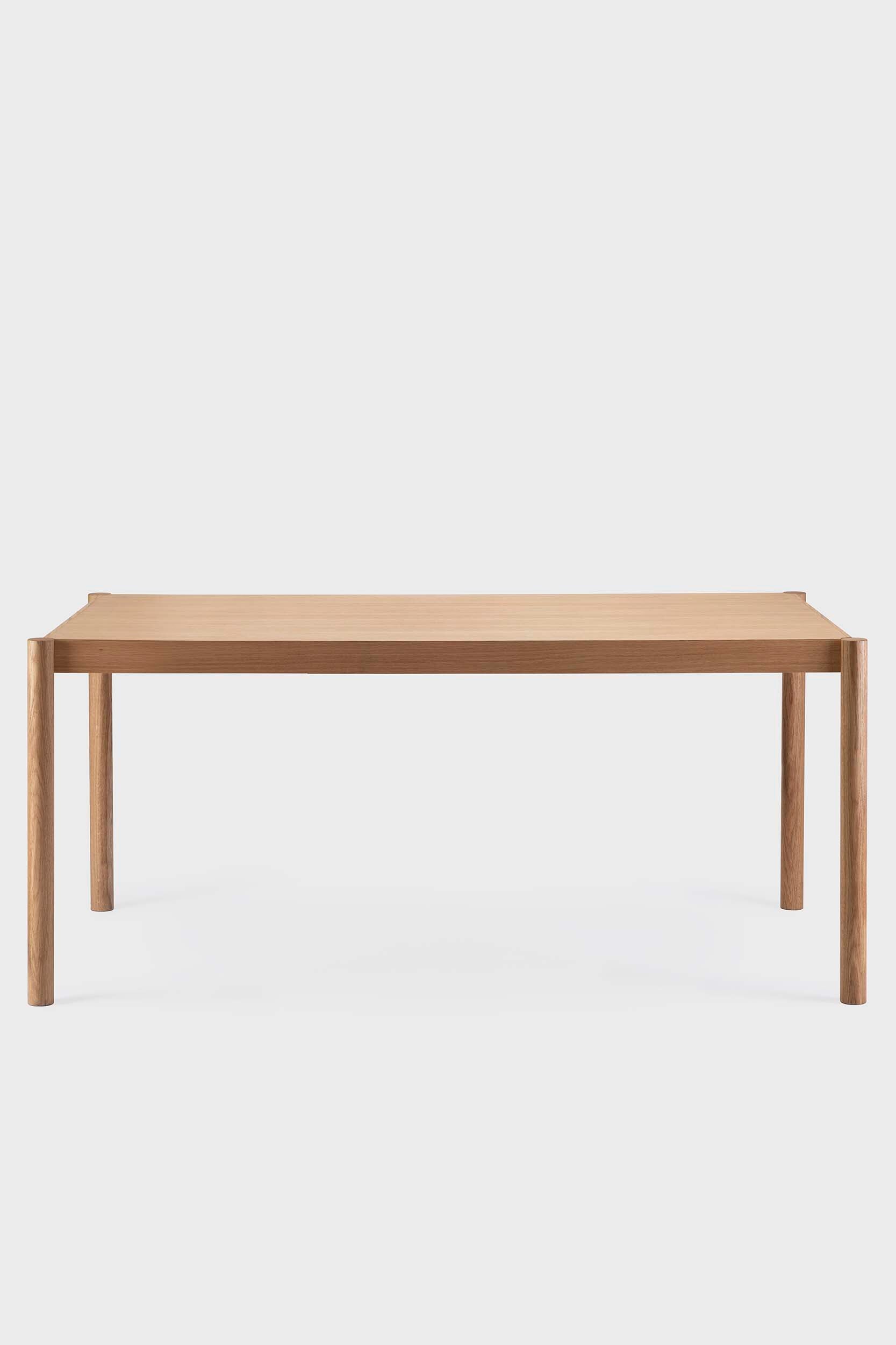 An elegant and clear design language is the main feature of the new Citizen dining table. Uncovered round legs here expose the clean structure of the table and highlight the beauty of wooden texture. Designed to enjoy a memorable time with our loved ones, Citizen is a highly versatile piece. It is available in three sizes — square as well as smaller or larger rectangular. This way, the table fits various purposes and interiors — from compact apartments to spacious restaurants or hotels.