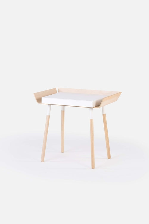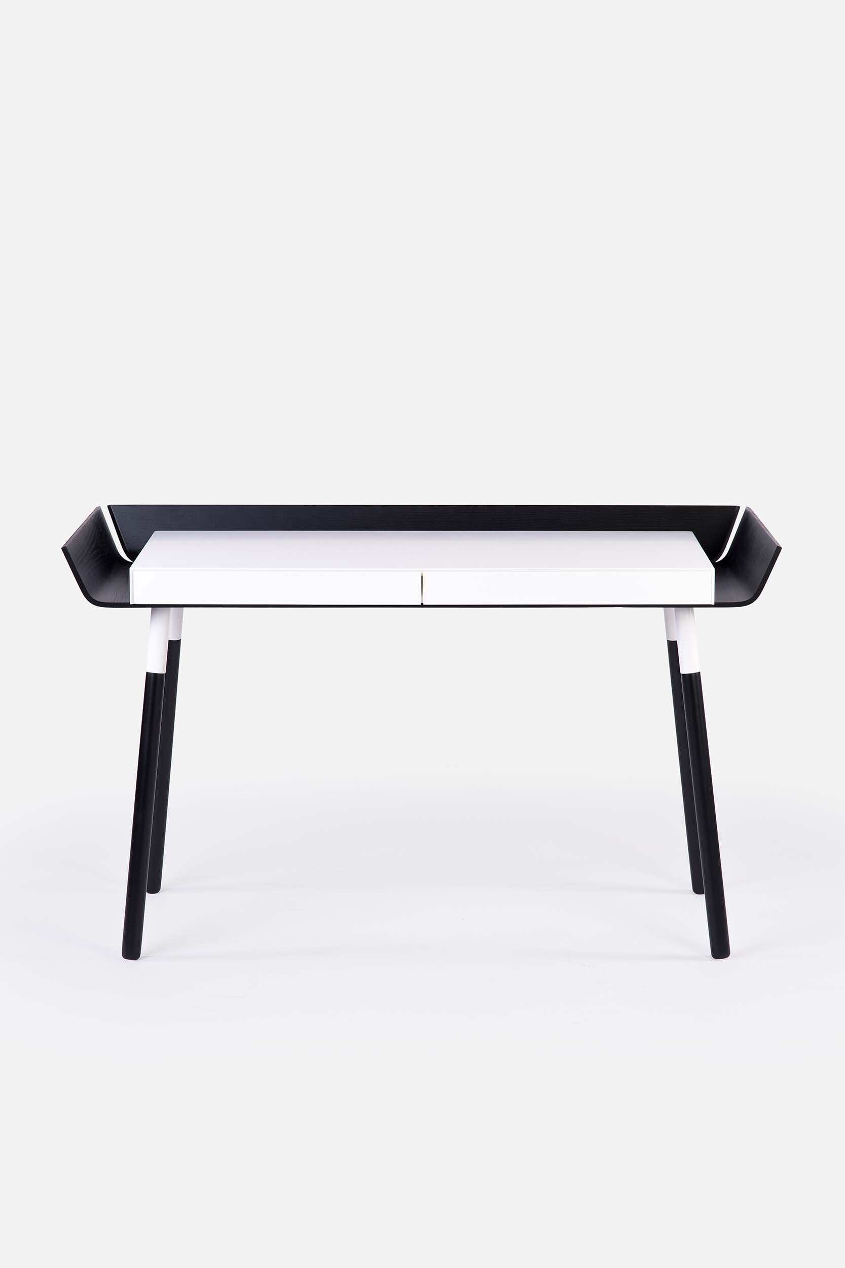 The high edges of the desk isolate it in the room and create a positive microclimate where things “feel good” in relationship to the user. The wings are divided, leaving space for electrical wires. MWD features two drawers to store a laptop and other working tools. The legs of the table can be twisted off for easier transportation. For smaller, cosier spaces, a one-drawer version was created. MWD is Inesa’s graduation project from the Vilnius Academy of Arts.