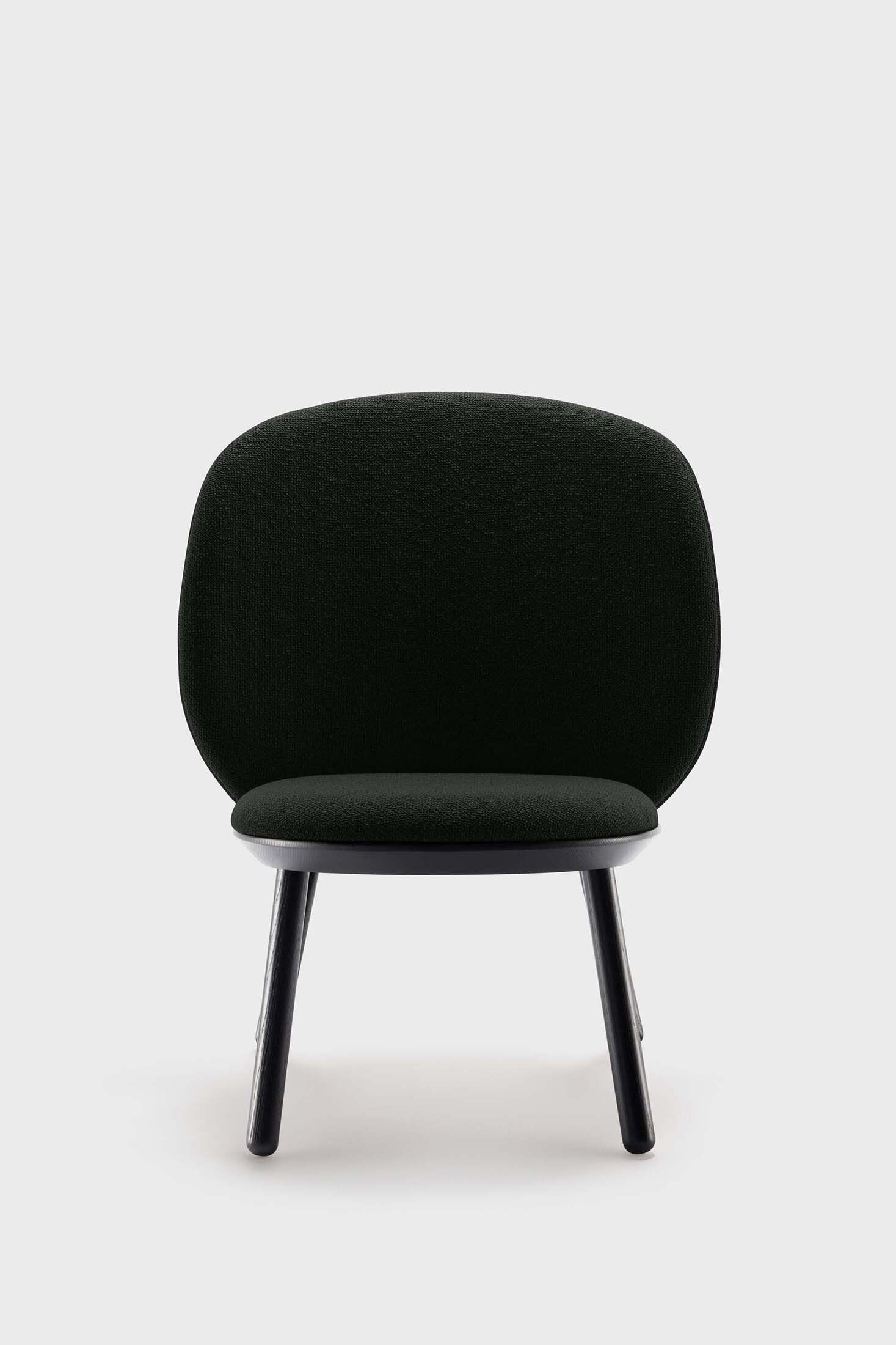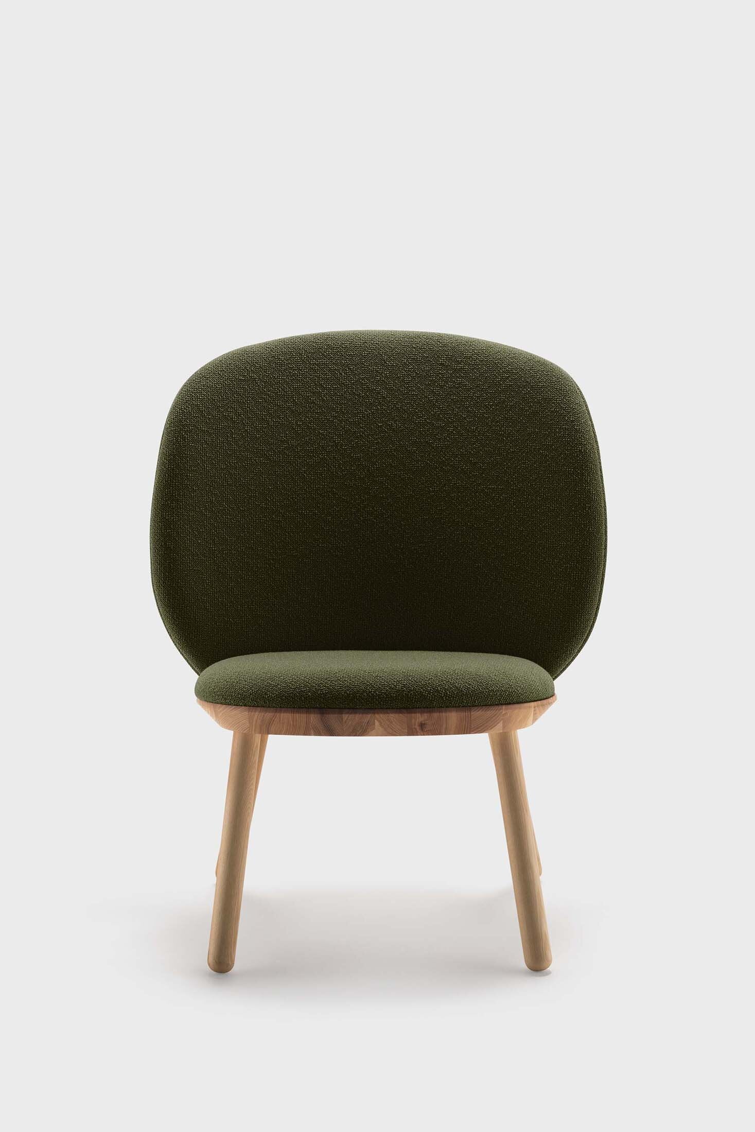 Being the youngest member of the Naïve family, the Naïve Low Chair introduces itself with a bright, yet mature and subtle look. Its main visual characteristic is a large leather strap that holds the backrest attached to the body. A firm connection between wood, leather and textile serves its function and makes it visually distinctive. After a long day, Naïve Low invites you for a cup of tea or coffee, to have a relaxing read or a small adventure while watching a movie. It’s a companion that values your time and sitting quality, so Naïve Low is a chair to live with. Like other pieces in this family, it features a body that can easily be unscrewed and flat-packed. It is composed of long-lasting natural materials and organically suits every background.