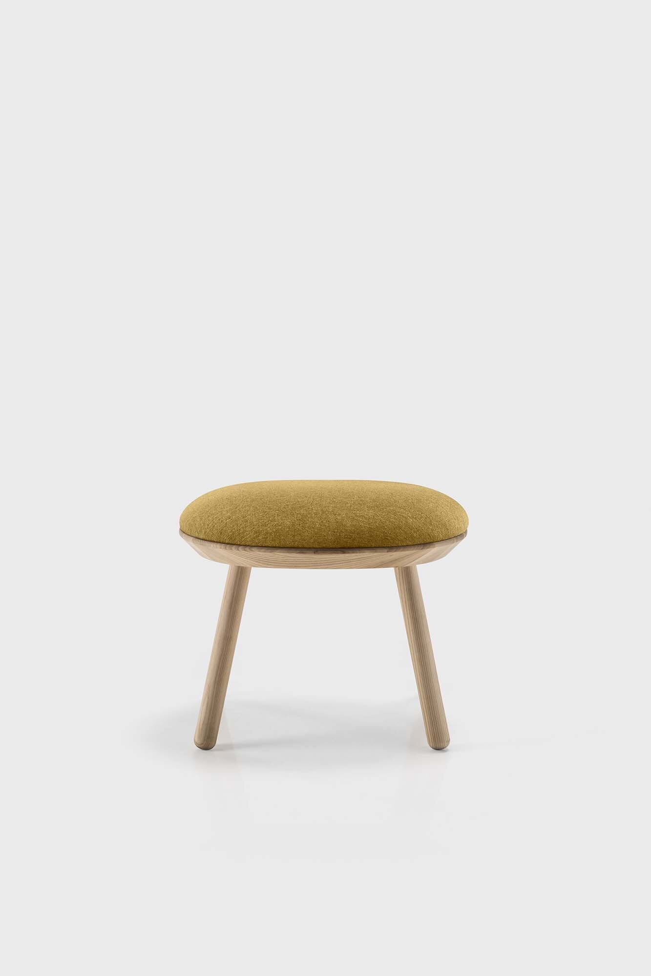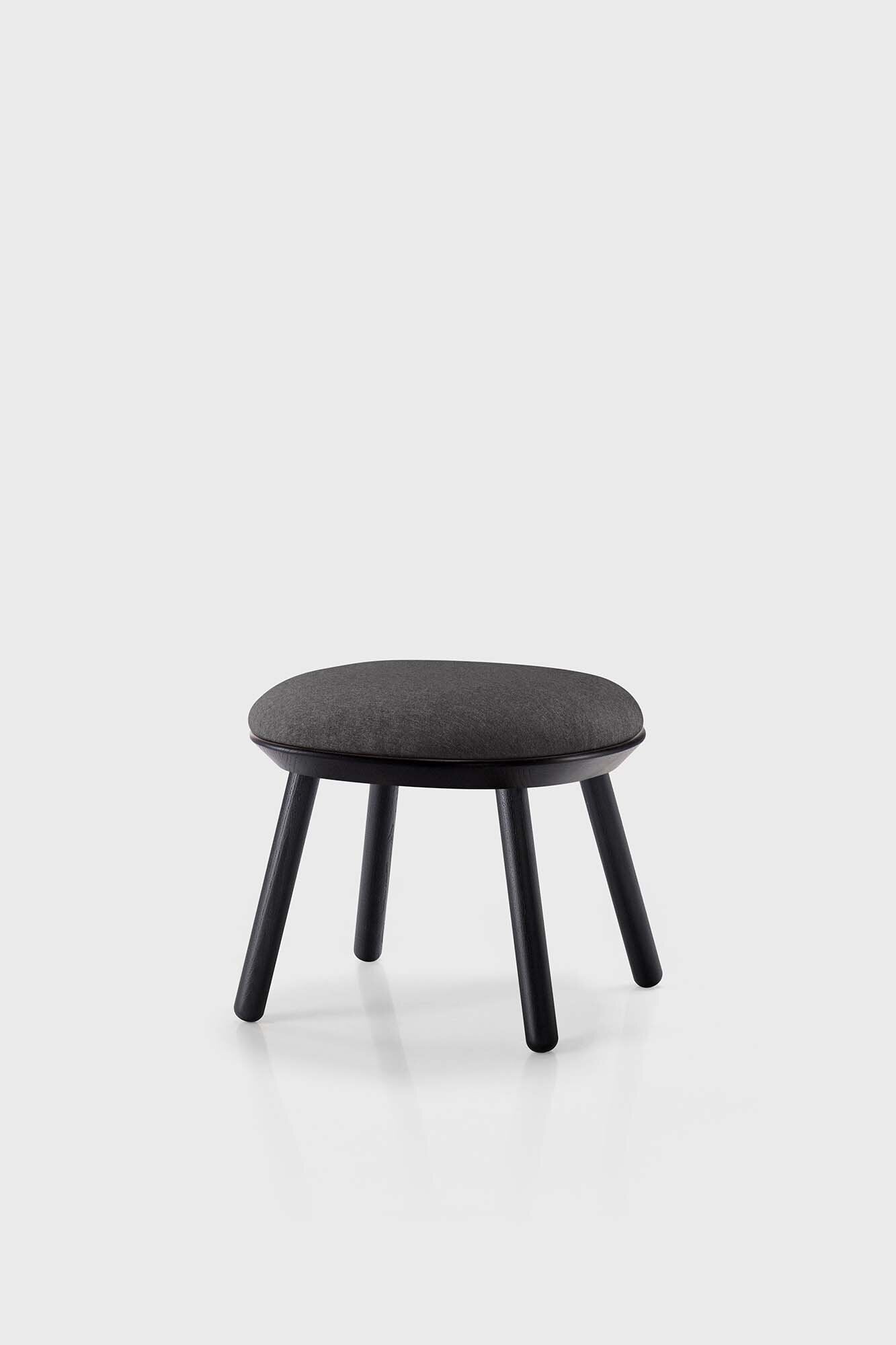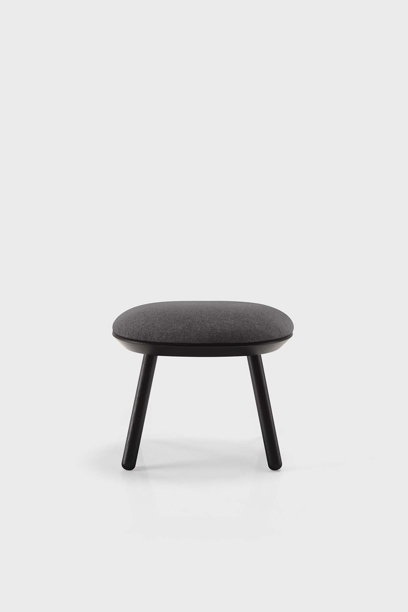 Just like the Naïve Low Chair, the Naïve Ottoman comes in different colours, with the frame being either black or oiled ash wood. The padding is made to aesthetically accommodate the frame, whereas all the solid links between the different materials result in a highly reliable piece of furniture. Soft, welcoming and easy to assemble, this delightful ottoman perfectly fits any environment.