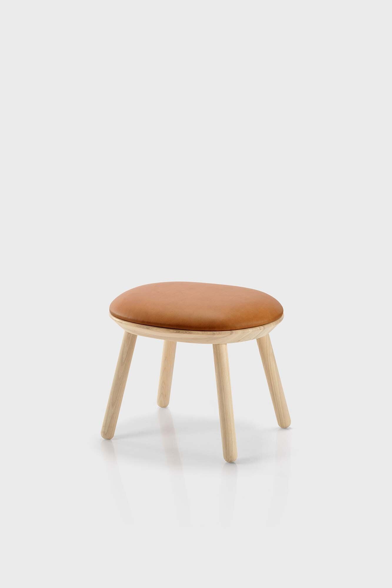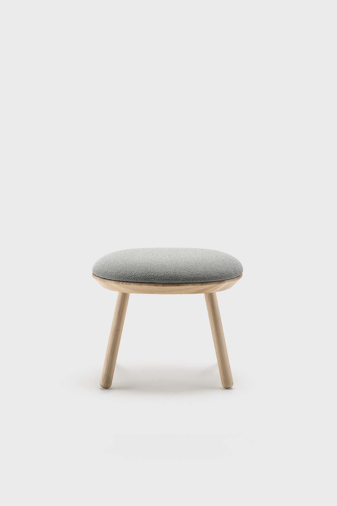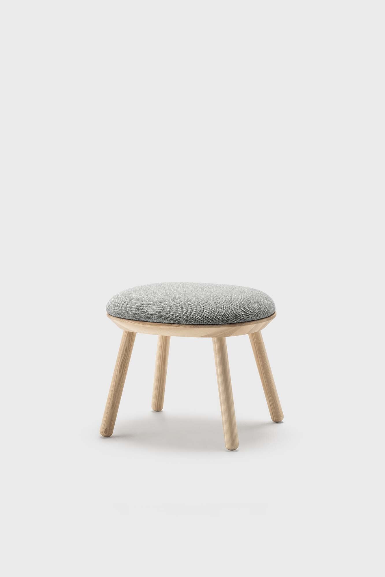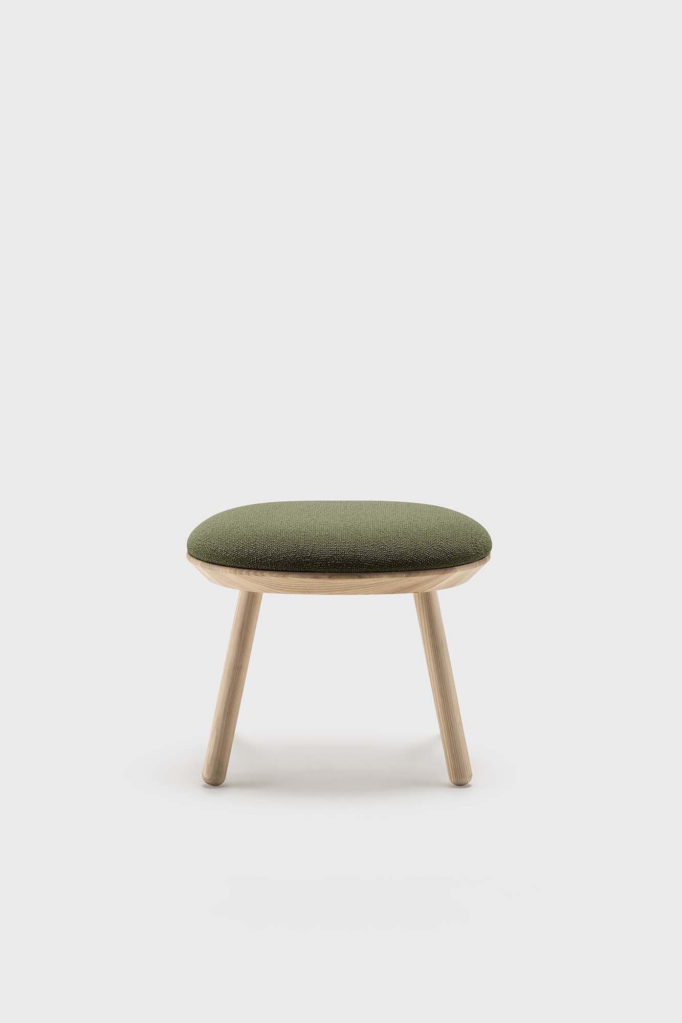 Just like the Naïve Low Chair, the Naïve Ottoman comes in different colours, with the frame being either black or oiled ash wood. The padding is made to aesthetically accommodate the frame, whereas all the solid links between the different materials result in a highly reliable piece of furniture. Soft, welcoming and easy to assemble, this delightful ottoman perfectly fits any environment.