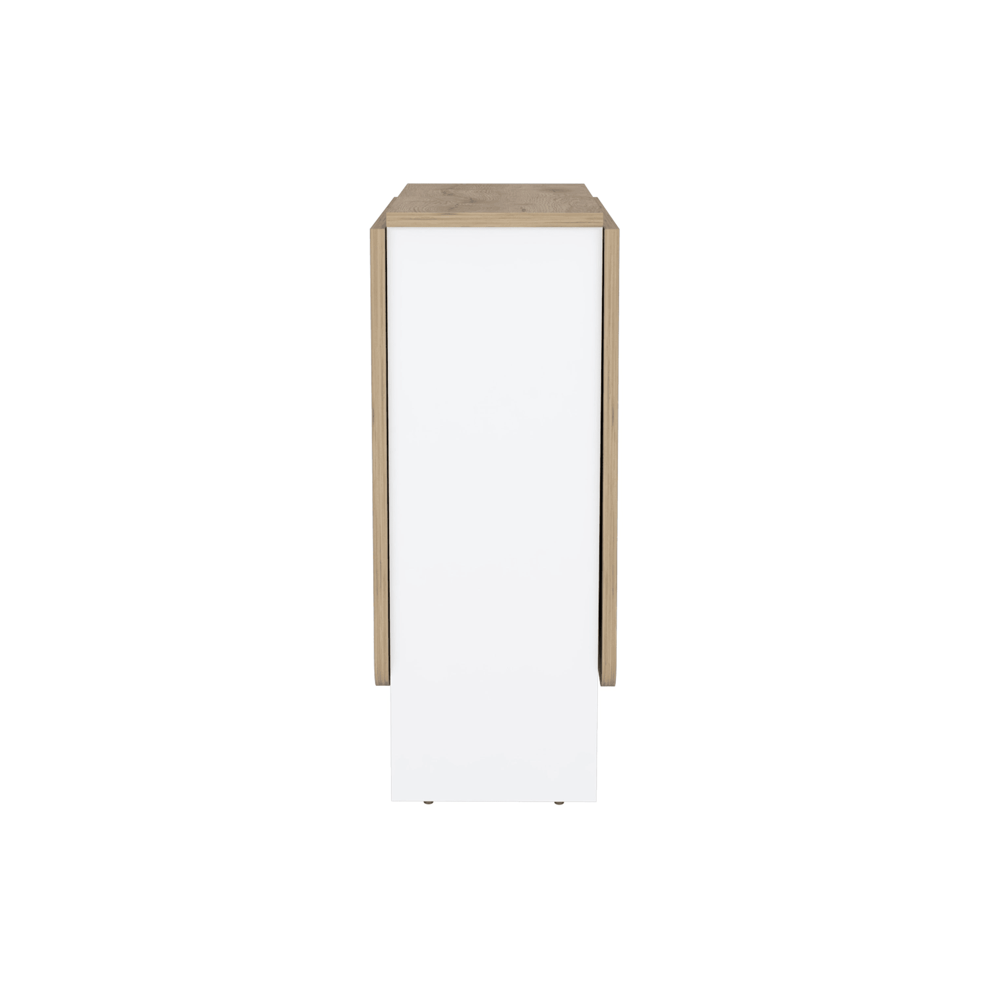 Crafted from durable manufactured wood, the Gateleg Folding Table is available in two elegant finishes: white/macadamia and black/macadamia. Its sturdy design allows it to support up to 22 pounds, making it suitable for various uses, from work to leisure activities.